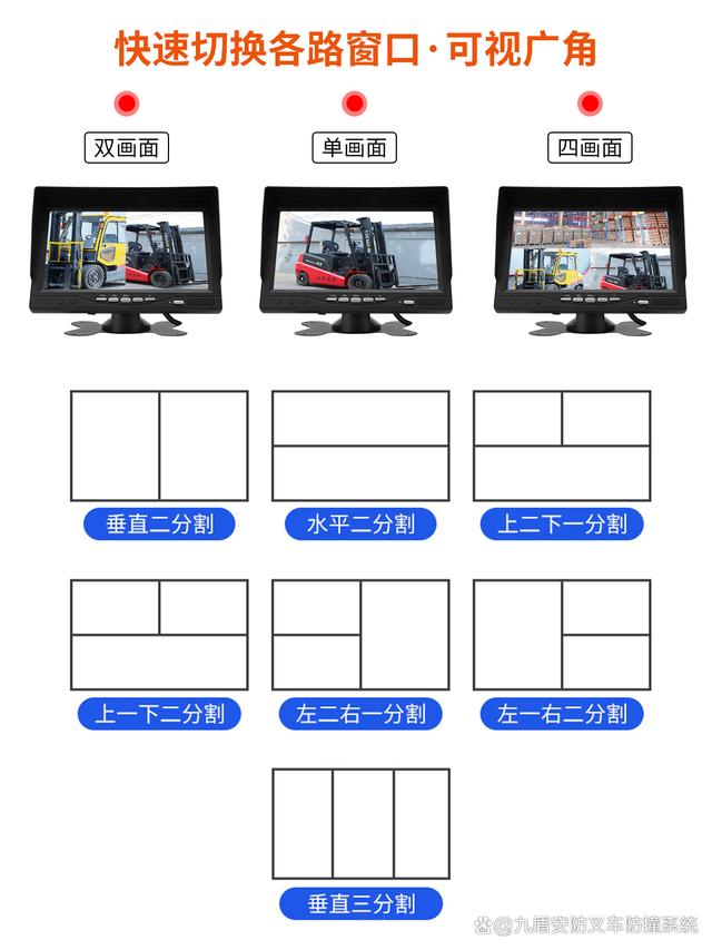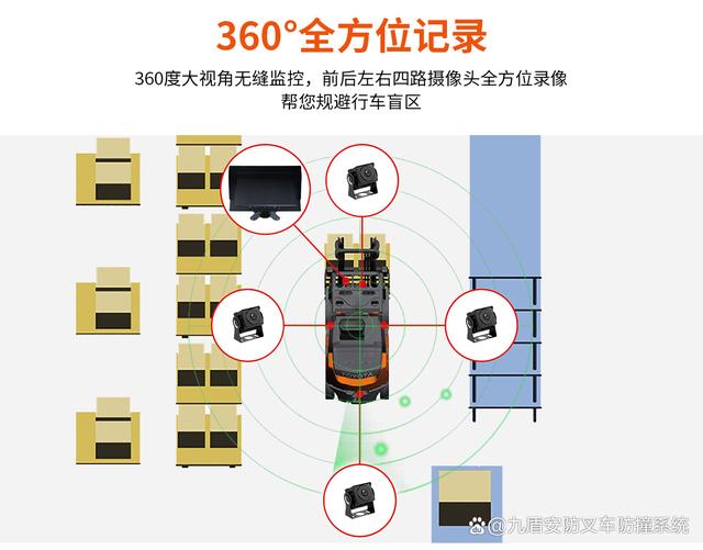 九盾叉车监控四路一体机配备了先进的图像识别技术,能够实时监测叉车周围的障碍物与行人,有效预防碰撞事故的发生。结合智能报警系统,一旦检测到潜在危险,便会立即发出警报,提醒驾驶员采取规避措施,从而确保每一次搬运作业都能在安全、高效的环境中完成。