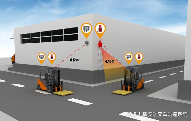 为了避免叉车引起的事故,广州九盾安防科技有限公司推出了一套创新的360度车与车、人与车防撞报警解决方案。该方案通过在叉车上安装监测设备,探测周围的人员、车辆等,以达到叉车与人员和叉车与叉车之间的防碰撞效果。