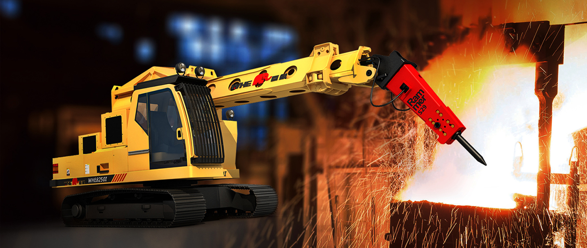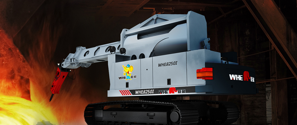 WHE8250是公司第一代产品的代名词,现已全面投产,分为三个类型:A为全进口高端配置,B为国内知名品牌基本配置,E为节能环保电力驱动。WHE8250产品的伸缩大臂,结束了使用笨重机器的时代,操控者几乎毫不费力,可方便使用先导操纵手柄,精确控制指挥伸缩臂顺畅作业,用最短悬吊距离伸缩进入合适的工作区域,提供最大撬力和360度大臂连续旋转,在难以接近的恶劣环境中按照操作者的旨意,拆除转炉、清理炉渣,高效率的打出钢口,完成出钢口打孔、拆钢包,鱼雷罐以及电炉的维修和耐火材料清理等工作。