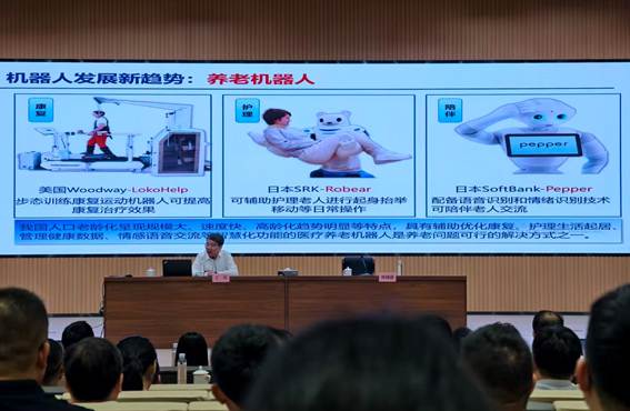 针对我国人口老龄化“规模大、速度快、高龄化”的特点,丁汉院士详细介绍了三类养老机器人: