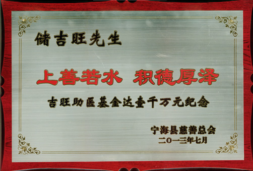 如意公司一直把慈善事业作为己任,热心参与和支持社会慈善公益事业,在面对世界经济复苏的步伐缓慢,国内经济下行压力逐步加大这样双重困难的严峻形势下,如意公司任然崇尚向善,默默承受压力克服困难,继续关心慈善事业,承担社会责任。今年4月,宁波如意股份有限公司董事长储吉旺向县慈善总会汇款100万元,至此“吉旺慈善助医基金”累计达1000万元。10年来,受基金救助的重患病者531人,金额达193万元。公司先后被评为宁波市十大慈善民营企业和2009年中华慈善突出贡献奖、2010年2012年“宁波市十大最具爱心捐赠企业”、2011年和2013年“宁波慈善奖”,公司董事长储吉旺也获首届“中华慈善奖”、宁波市十大慈善人物、宁波市慈善楷模。