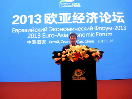刚结束随习近平主席访中亚四国,耳边还响着习主席鼓励企业家的声音,9月26日,公司董事长储吉旺受邀又赶赴西安参加2013年第5届欧亚经济论坛。参加论坛的有欧亚国家领导人、国际组织代表、相关国家驻华使节、诺贝尔经济学奖得主、知名大学校长及世界500强企业领导人,嘉宾范围涵盖全球70多个国家和地区。欧亚经济论坛是国务院批准成立的以上海合作组织国家为主体,面向广大欧亚地区的政商学界对话平台。论坛发起于2005年,在西安设立永久会址,每2年举办一次,以加强中国与欧亚国家友好往来,推进经贸合作与经济发展为目标,交流合作信息,探讨合作途径,共议发展大计。习近平出访中亚四国时提出“丝绸之路经济带”新主张,推动丝路地区合作成为国家战略。借此概念,西安作为丝路起点、论坛东道主,本届论坛在巩固能源、金融、旅游、生态等对话机制的基础上,新设“丝绸之路经济带城市圆桌会”,沿线城市代表探讨区域对话合作模式,注重与板块经济、主导产业和西安元素紧密结合。