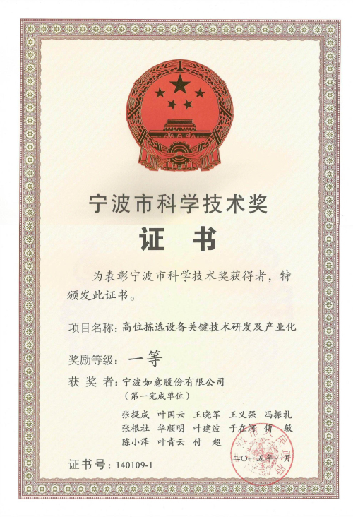 1月30日下午,宁波市人民政府召开全市科技工作会议,会上对2014年度科学技术进步奖、宁波市发明创新大赛获奖单位进行了表彰,公司的“高位拣选设备关键技术研发及产业化”项目获得2014年宁波市科学技术一等奖(全市共9家单位获奖)。自市政府设立该奖项至今,如意第2次获得宁波市最高科技奖项,也是整个宁海县工业企业中第二次获得该荣誉。