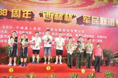 在“八一”建军节前夕,宁海县人武部、宁波如意股份有限公司牵手县边防大队、县预备役炮兵营、县消防大队、西店73681部队、长街香花山海军部队、县武警中队共同举办 “西林杯”军民联谊赛。县宣传部部长王建云、县人武部政委邓富根、副县长娄黛敏等领导出席活动。