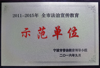11月9日,宁波市党委、市政府在宁波市行政会议中心召开法治宁波建设十周年纪念大会,表彰如意公司近年来持续推进“法治宁波建设”的工作成效。宁波市普法教育领导小组授予如意公司“2011-2015年全市法治宣传教育示范单位”。