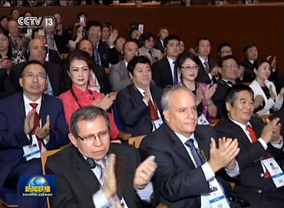 中央电视台转播APEC会议现场,储董在APEC会议现场听习主席发言