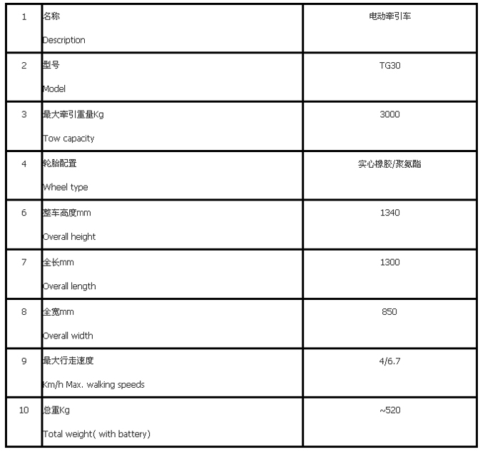 TG系列电动牵引车是我公司研制的一款环保型牵引车辆,无级调速电动行走方式,高容量电池,大功率牵引电机,牵引力大,行走快速,低噪音、无污染、造型新颖、体积小巧,操控方便。它可在一般路面上和狭窄通道中作短途牵引作业。适用于车站、邮电、军工、烟草、商业、制造业、旅游等行业和场所。接下来,向您介绍我们的电动牵引车TG30。