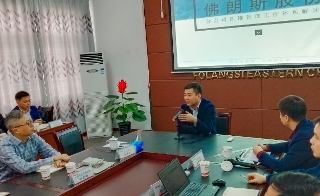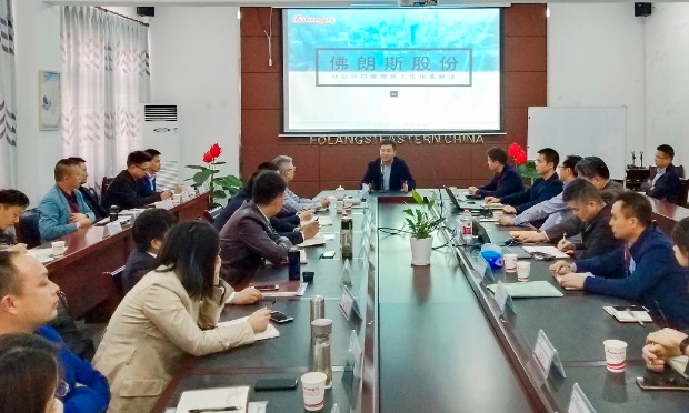 2018年4月13-14日,佛朗斯股份国内事业版块2018年第一季度大区经理工作会议在公司华东管理本部—美丽的昆山圆满召开。公司总经理侯泽兵、董助兼大客户管理中心总监戴云保、副总杨庆元、总部各职能中心总监及国内事业版块大区经理共同参加会议。本次会议由总助霞朝明主持,会议主要针对国内事业2018年一季度经营业绩进行总结,同时就下一阶段的整体发展规划和拟定目标等问题进行深入探讨。