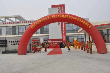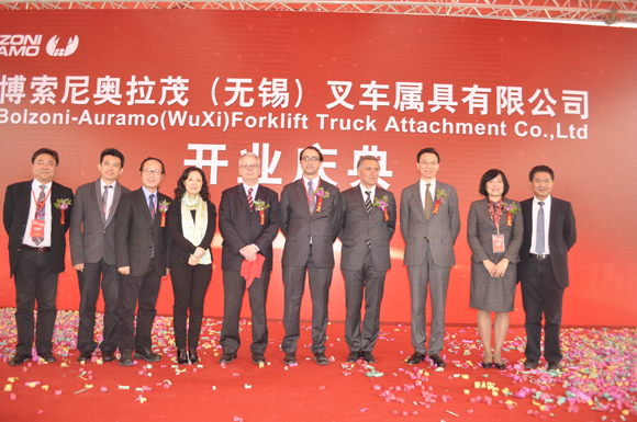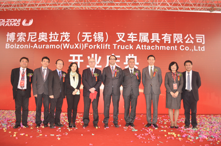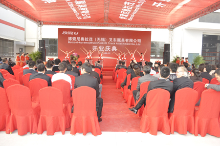 2013年3月22日下午, “博索尼奥拉茂(无锡)叉车属具有限公司开业典礼”在江苏省无锡市锡山区安镇安泰二路2566号隆重举行,开业庆典现场宾客云集,博索尼奥拉茂配套主机厂商、各地区经销商、终端客户代表、无锡市委领导、博索尼奥拉茂高层、国宝集团及旗下公司高层、中国工程机械工业协会工业车辆分会领导等社会各界代表100余位共同参与此项盛典,对博索尼奥拉茂在中国的发展予以殷切的希望和热情祝愿。中国叉车网(www.chinaforklift.com)应邀出席该会。
