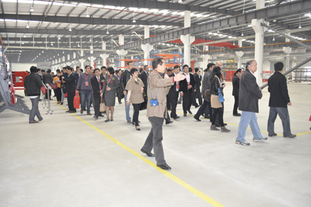 博索尼奥拉茂(无锡)叉车属具有限公司黎副总带领嘉宾参观了博索尼奥拉茂新工厂办公区,据黎副总介绍,博索尼奥拉茂(无锡)叉车属具有限公司总投资2500万美元的,是目前集团在中国的最大生产基地。