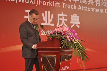 无锡锡山经济开发区党工委副书记陈建清先生对博索尼奥拉茂(无锡)叉车属具有限公司的开业表示热烈的祝贺,并寄予殷切希望。