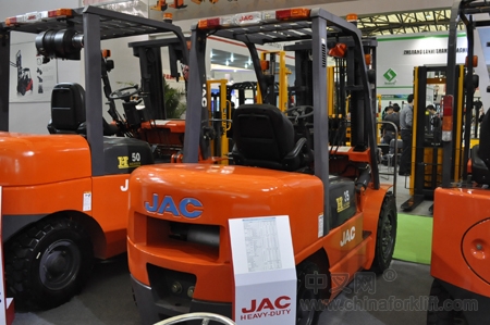 江淮重工此次选择了极具江淮特色的J系列内燃叉车及电动叉车;H系列电动叉车;H系列3.5T、4.5T内燃叉车以及仓储系列叉车对外展示。