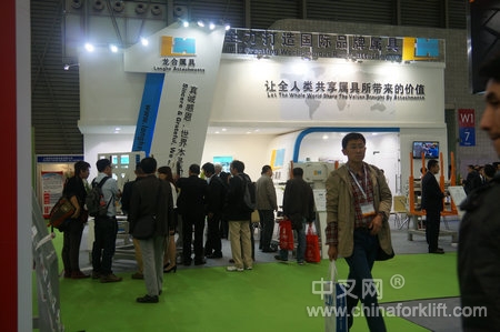 本次龙合参展的产品有旋转器、推拉器、旋转纸卷夹、单双托盘叉、调距货叉、旋转推出器、软包夹等十几种产品,包括了叉、夹、推、拉、旋转和侧移等作业。