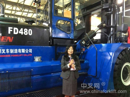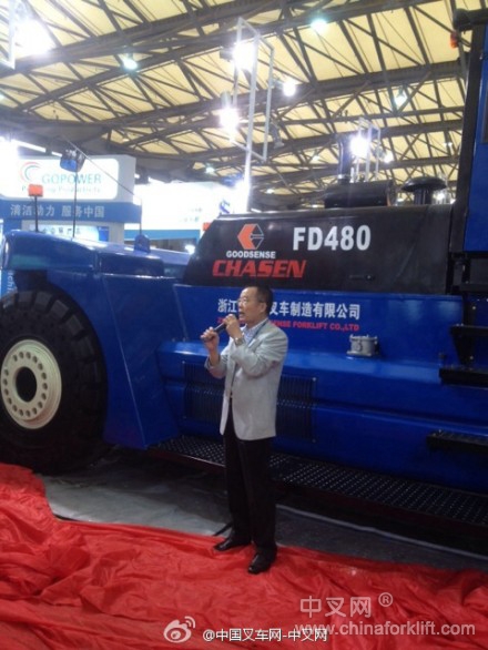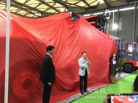 由吉鑫祥自主研发、制造的48吨内燃平衡重式叉车于10月27日在2014上海CeMAT揭幕,参加揭幕的有中国工程机械工业协会工业车辆分会秘书长张洁女士、中国叉车后市场联合会会长赵己铭先生、浙江吉鑫祥叉车制造有限公司总经理王桂生先生及叉车行业资深人士、行业媒体,在大家的共同见证下,国内首台48吨叉车呈现在大家眼前,实实在在的“巨无霸”。