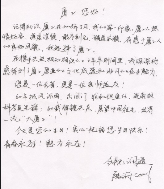 厦工您好!
