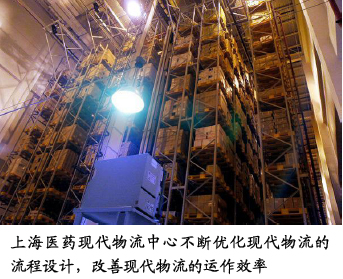 上海医药现代物流中心具有设备先进、系统规划科学、软件安全等特点优势。物流中心选用RF无线射频技术、SORTER(自动分拣系统)、AS/RS(自动存储系统)、DPS(电子标签),软件方面选用美国曼哈顿的WMS(仓储管理系统),与公司的ERP(企业资源计划)无缝对接,在系统设计上确保了流程的合理性,保证了作业的正确率能达到99.98%,降低了药品物流配送的风险。