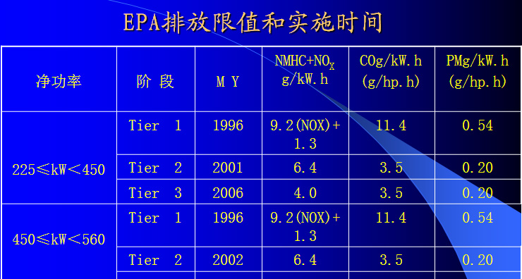 3、美国EPA对不同用途的发动机的排放采用的标准