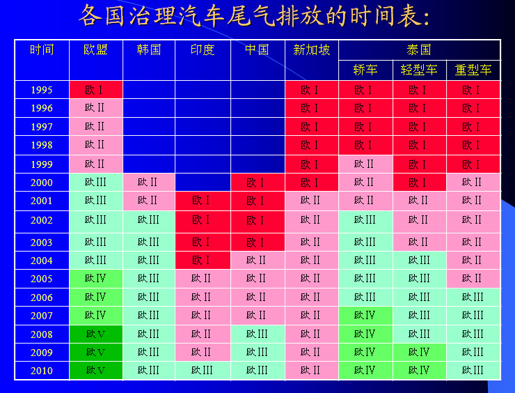 我国于1999年颁布GB17691-1999,开始对车用压燃式发动机的排放实施控制,于2001、2005年进行了两次修订,等效采用欧盟法规。2007年1月1日起执行中国Ⅲ阶段标准。