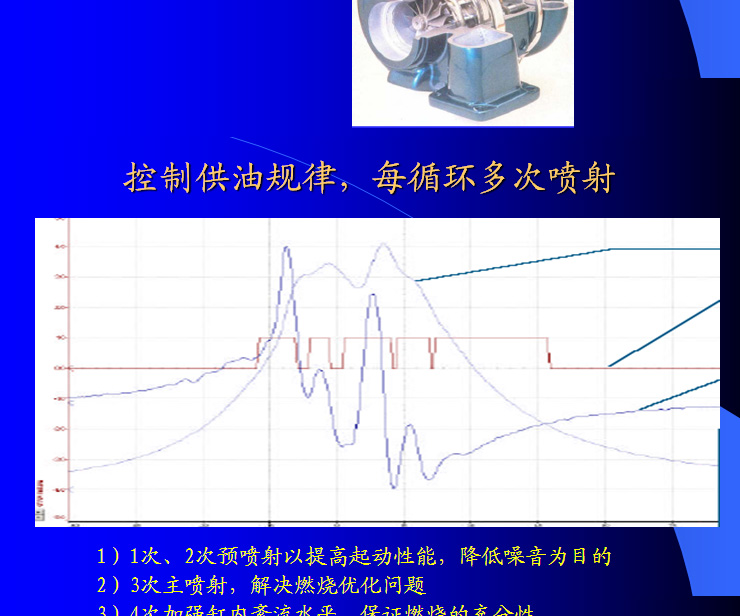 影响因素:高压油泵供油能力和供油速率,高压油管的长度和内径,喷油器开启压力、流量(油孔直径)、油孔数目、喷雾锥角、油嘴凸出量、安装角、压力室容积 ,供油提前角。