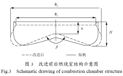 现代柴油机燃烧室发展趋势是采用缩口燃烧室,加强燃烧室中央底部凸起,利用燃烧室形状改变燃烧室内的气流运动特性,在燃烧室中产生较强烈的挤流与逆挤流运动,并可增大燃烧室的涡流保持率,以改善混合气