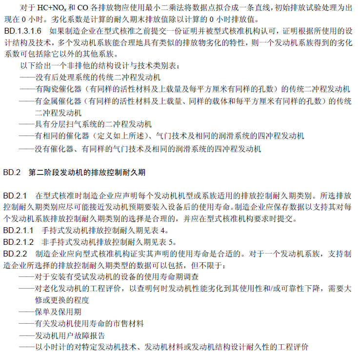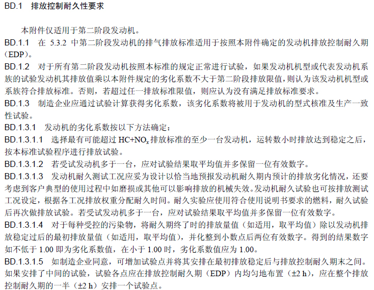 > 小型点燃式发动机——附件BD(规范性附件)排放控制耐久性要求