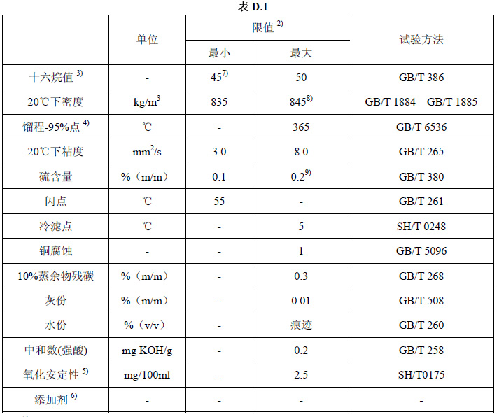 > 柴油机——附录D(规范性附录)基准柴油的技术要求
