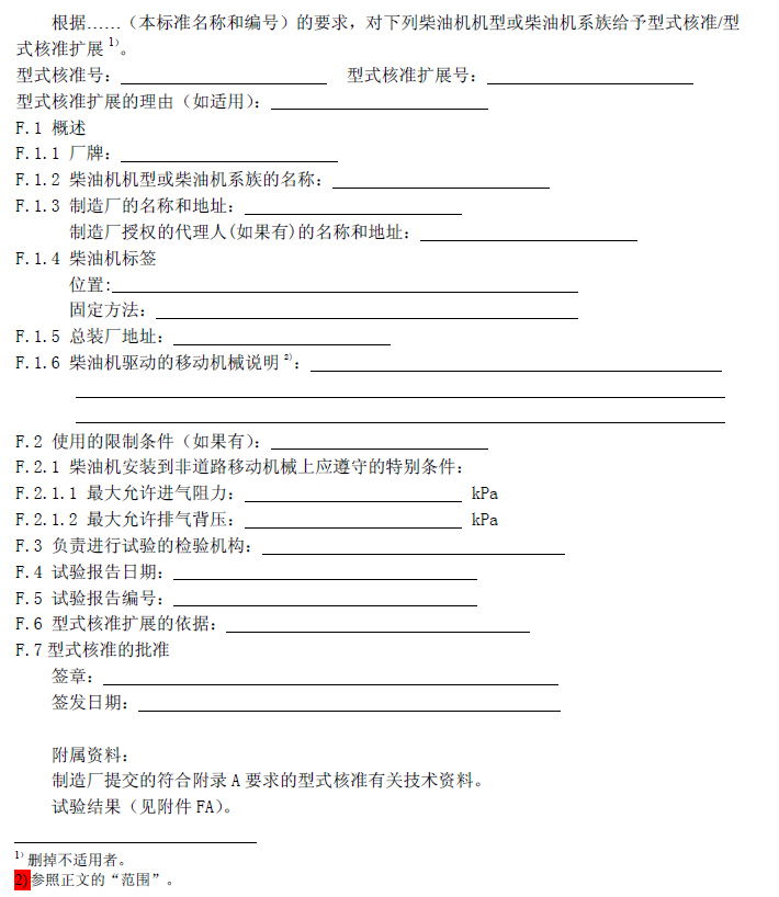 柴油机——附录F(规范性附录)型式核准证书