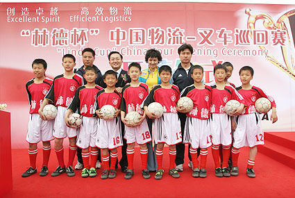 郭进鹏总裁、高敏女士与未来足球之星合影