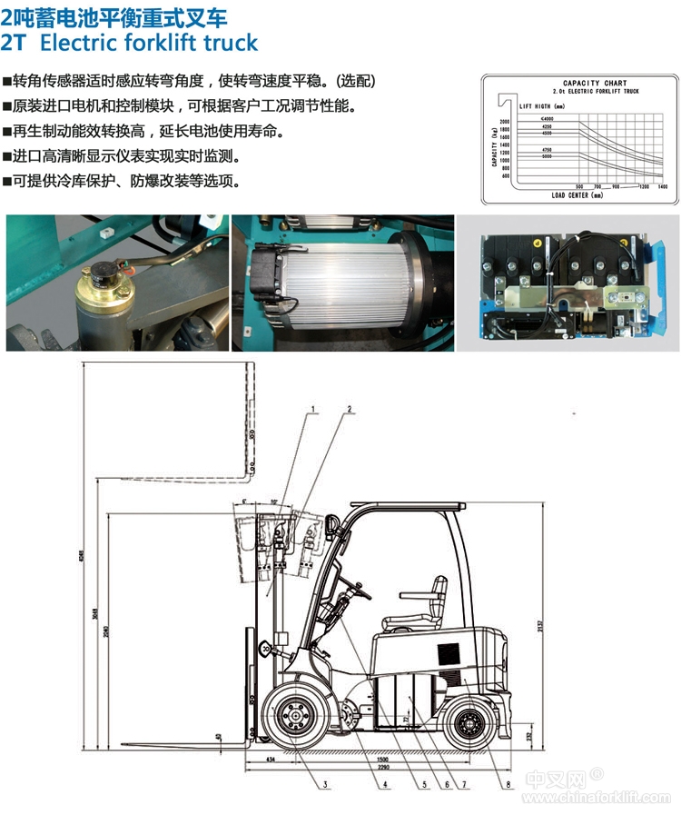 ·转角传感器适时感应转弯角度,使转弯速度平稳。(选配)·原装进口电机和控制模块,可根据客户工况调节性能。·再生制动能效转换高,延长电池使用寿命。·进口高清晰显示仪表实现实时监测。·可提供冷库保护、防爆改装等选项。